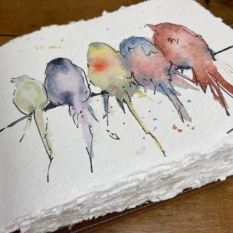 Handcrafted leather watercolor journals, available in a variety of styles and colors, featuring 350 GSM whIte deckle-edge handmade paper.