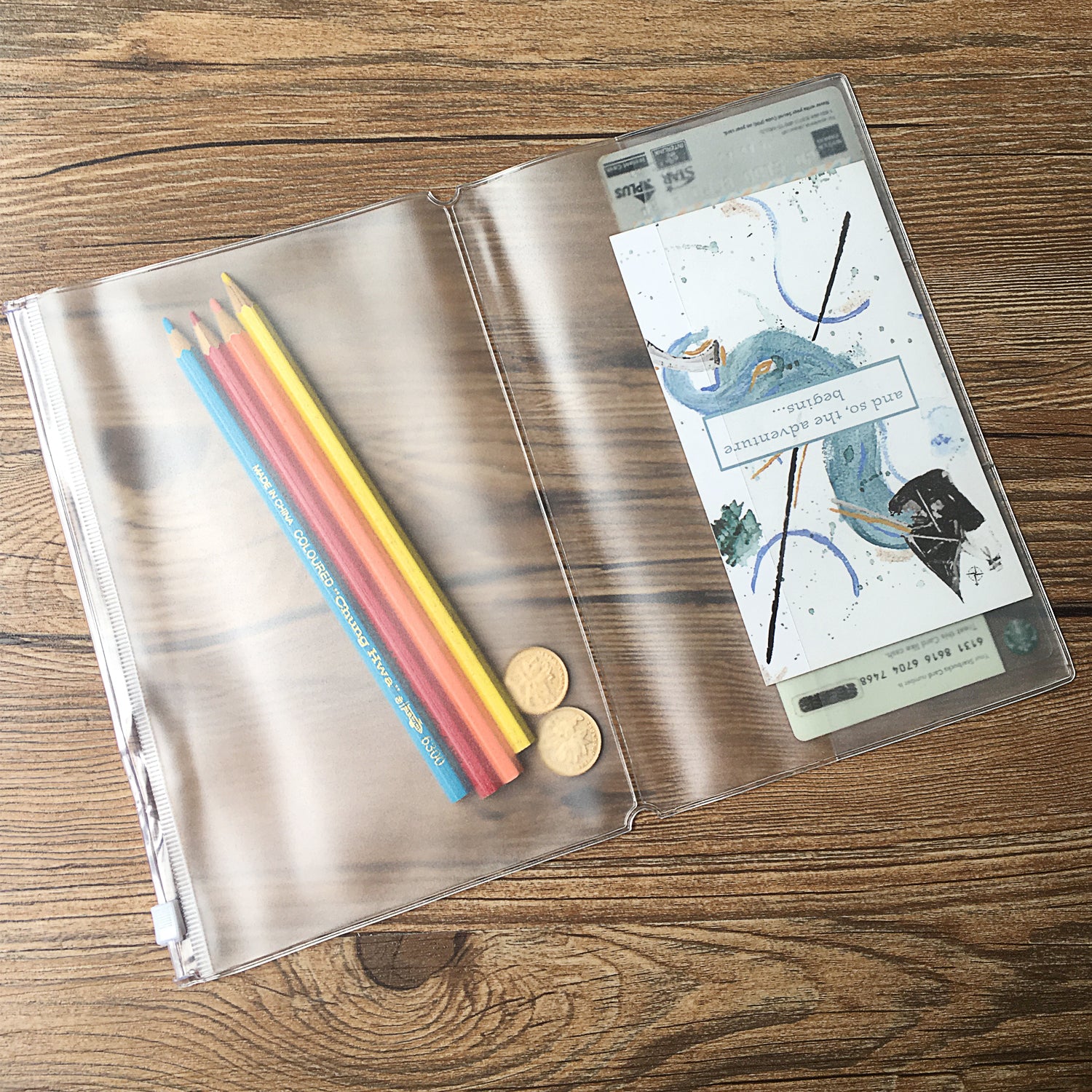 Clear Zipper Pouch has a zipper case on one side and a 2 smaller slots on the other.
