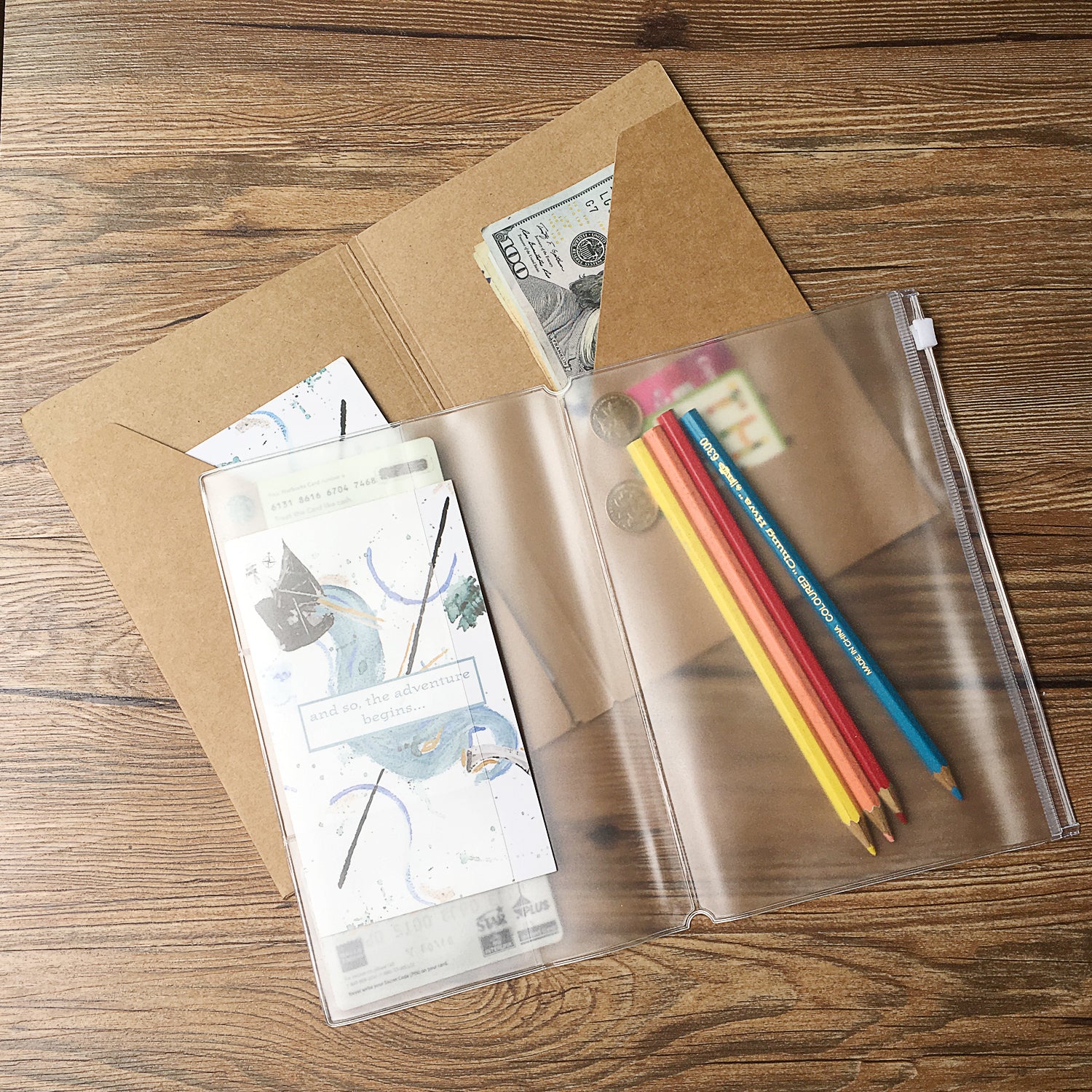 Zipper Case and Kraft Card Sleeve Holder Travelers Journal Accessories Pack 2-Pack for Refillable Travel Journals - A5 Size - 8.25 x 5.25