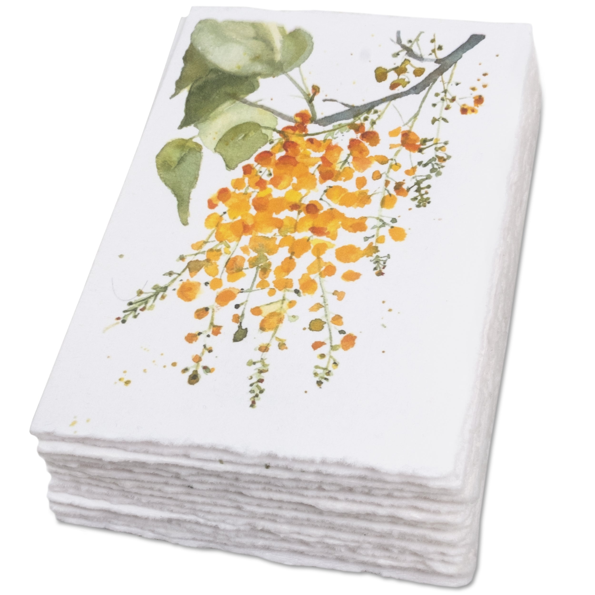 ✔️ [Artisan Crafted Variety Pack]: Discover the beauty of tradition with our 20-pack of super thick 300 gsm cotton deckled edge paper greeting cards and 150 gsm envelopes, each printed with a flower cover and folded to 5"x7" / 13x18 cm. This set includes 4 different floral covers 5 cards of each design carefully arranged for a balanced and elegant assortment. Skillfully crafted by artisans using techniques passed down for generations in India, this white, cold-pressed textured card is ideal for crafts, light watercolor, acrylic, charcoal, ink, printers or colored pencils. For heavy washes and extensive water use, we recommend our watercolor paper: B0CYY858SL.