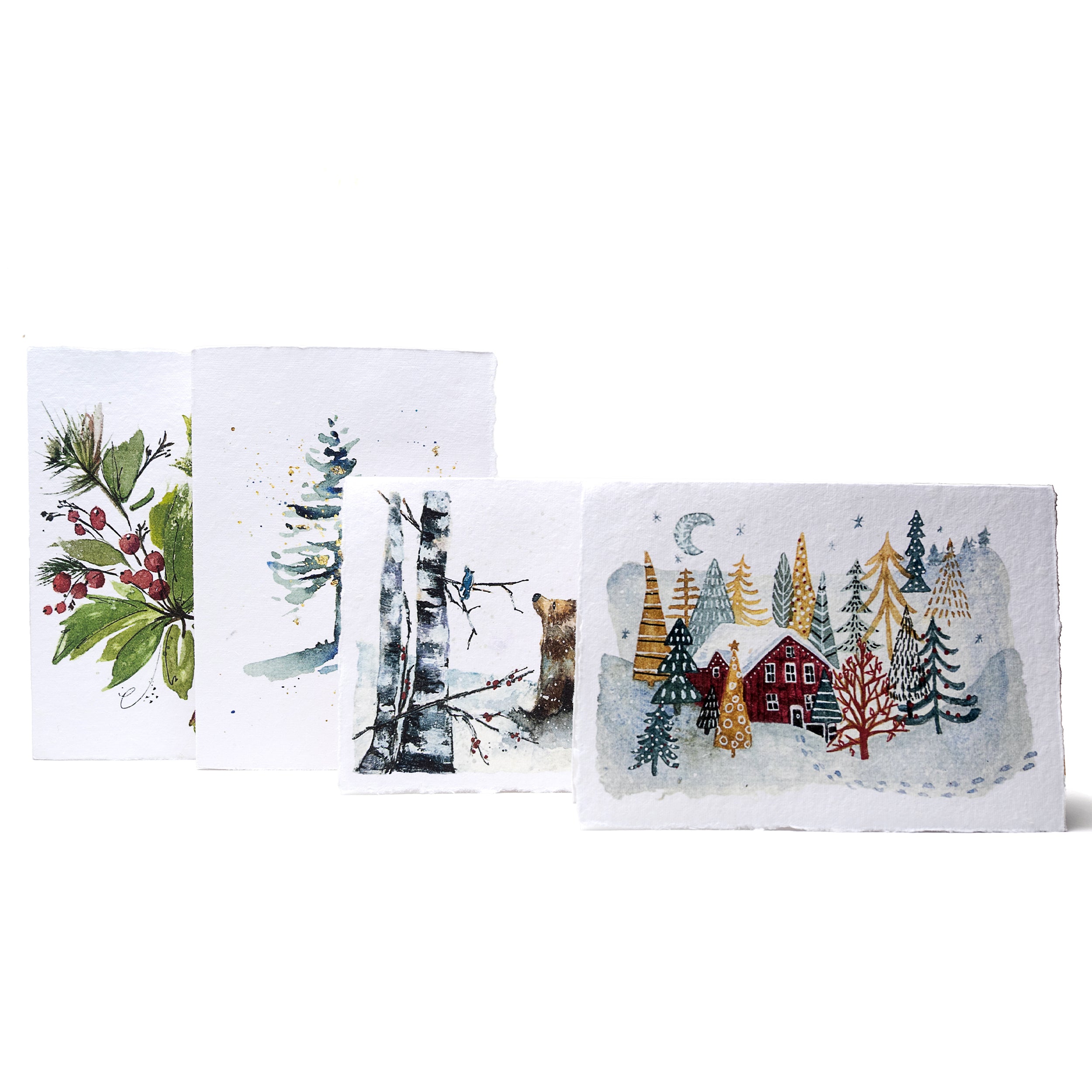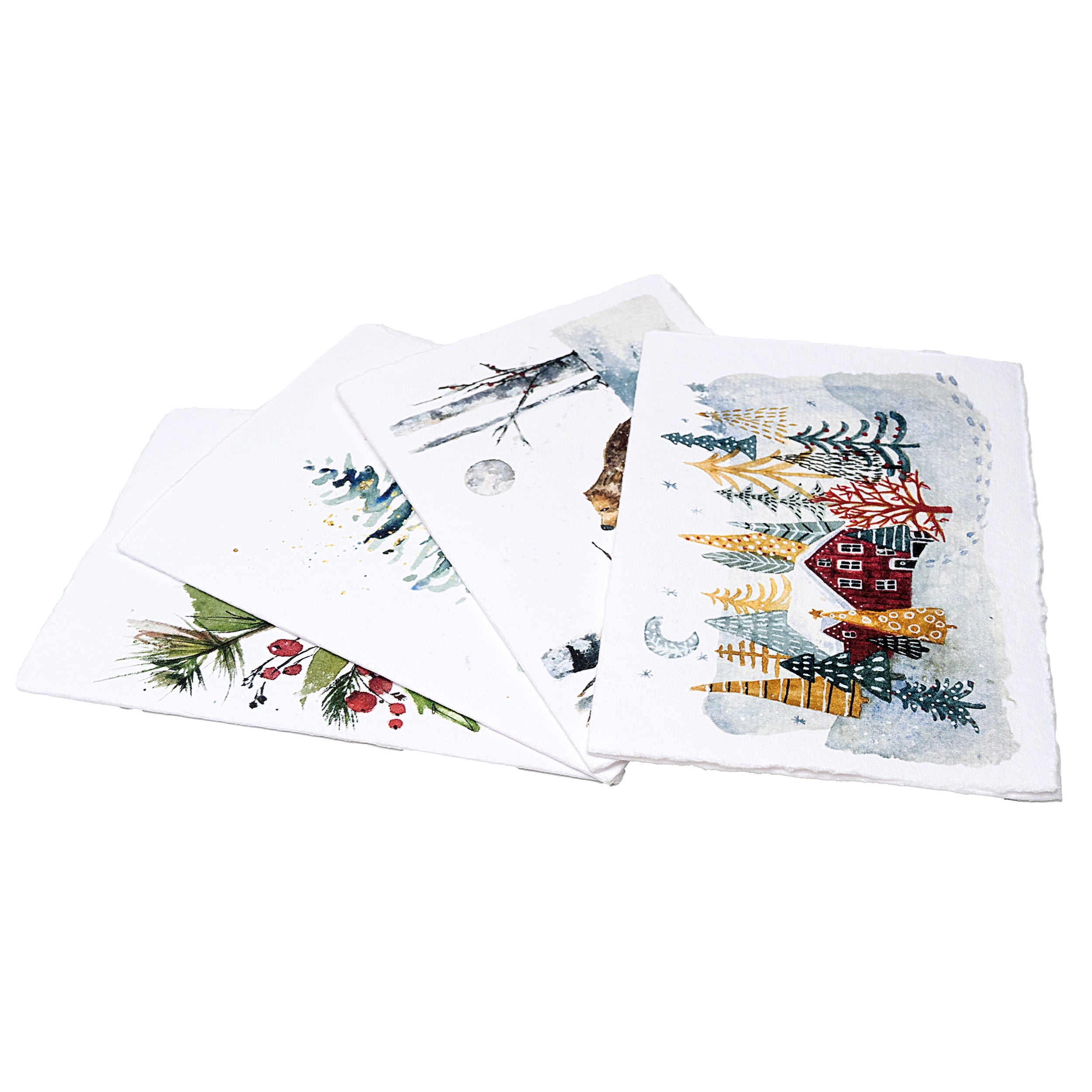 Handmade Deckle Edge Greeting Cards & Envelopes with Wintar Art - 300gsm – 20 Cards (5 Each of 4 Varieties) - 5x7