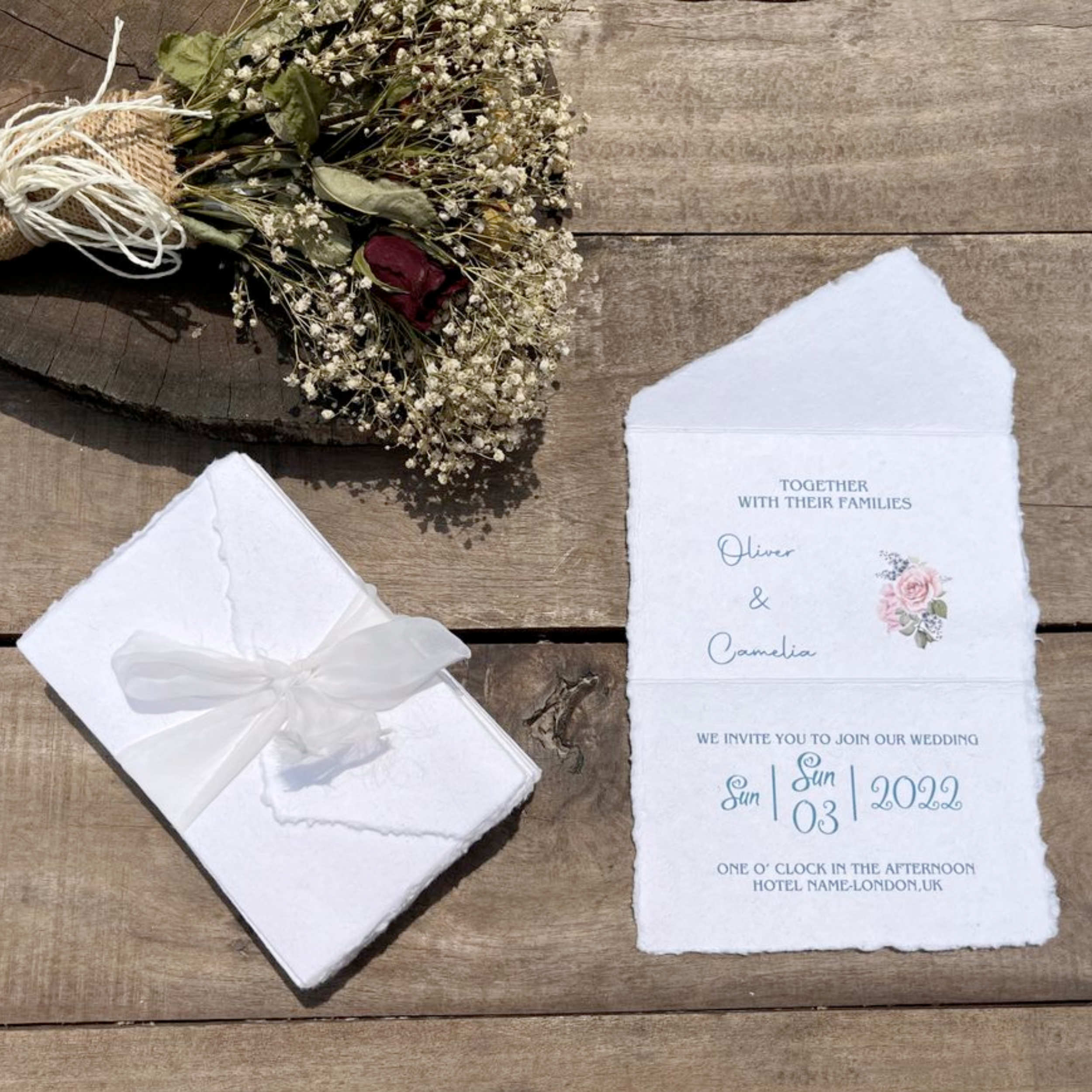 ✔️ AN ELEGANT ALTERNATIVE TO PLAIN PAPER - These one-of-a-kind handmade All-in-One Card/Envelopes are an elegant choice for Save-the-Date, Wedding Invitations, Thank You Notes, Greeting Cards, Birthdays, or Special Acknowledgements of any kind.