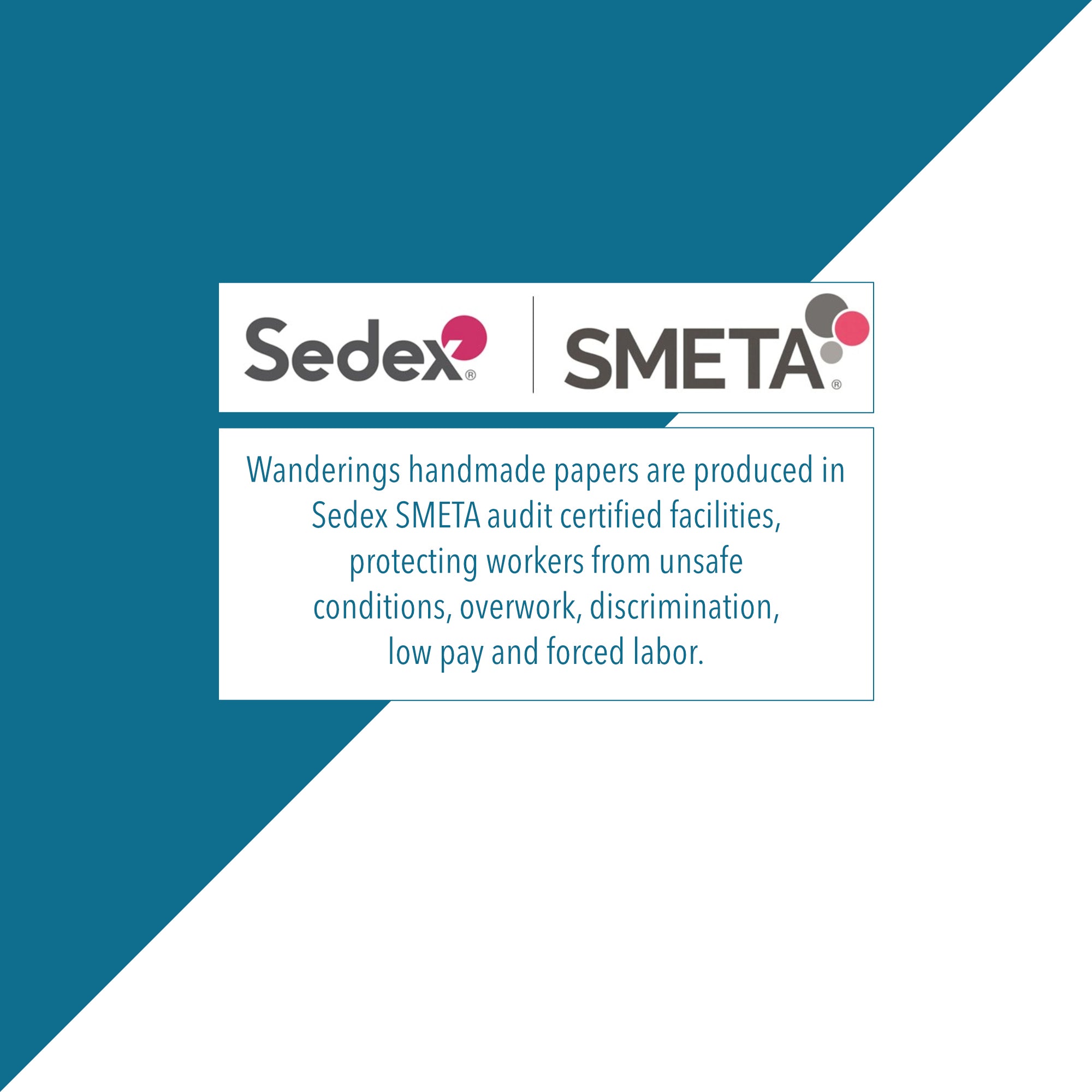 ✔️ PROTECTING WORKERS - Wanderings handmade papers are produced in Sedex SMETA audit certified facilities, protecting workers from unsafe conditions, overwork, discrimination, low pay and forced labor.