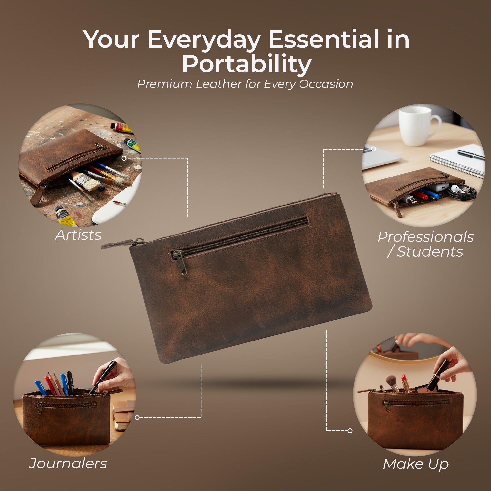 - Multi-Purpose & Versatile: A versatile leather pen case that doubles as a makeup bag, tech pouch, or art supply case. More than just pencil pouches, this stylish organizer balances beauty, functionality, and craftsmanship. Perfect for artists, professionals, travelers, and students who want a compact, elegant way to carry everyday essentials.
