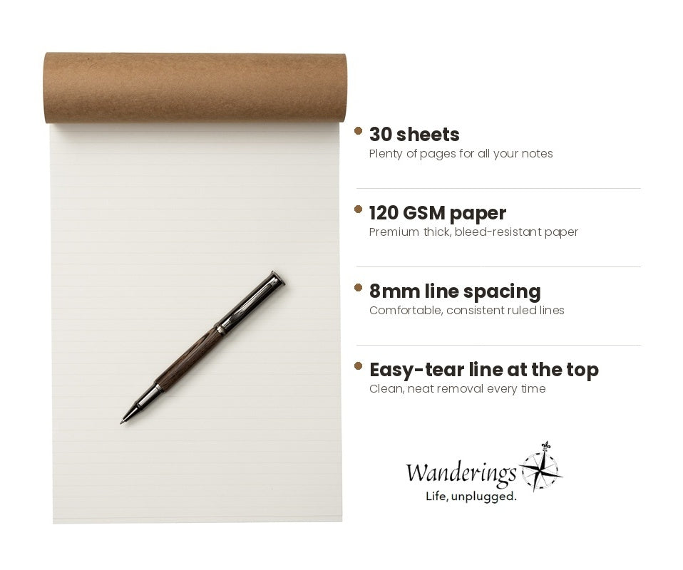 [125 GSM Premium Paper]: Fits Wanderings Padfolio 10" x 13", this A4 refill notepad (8.25" x 11.70" / 210 x 297 mm) sits neatly inside your portfolio for a clean, professional setup