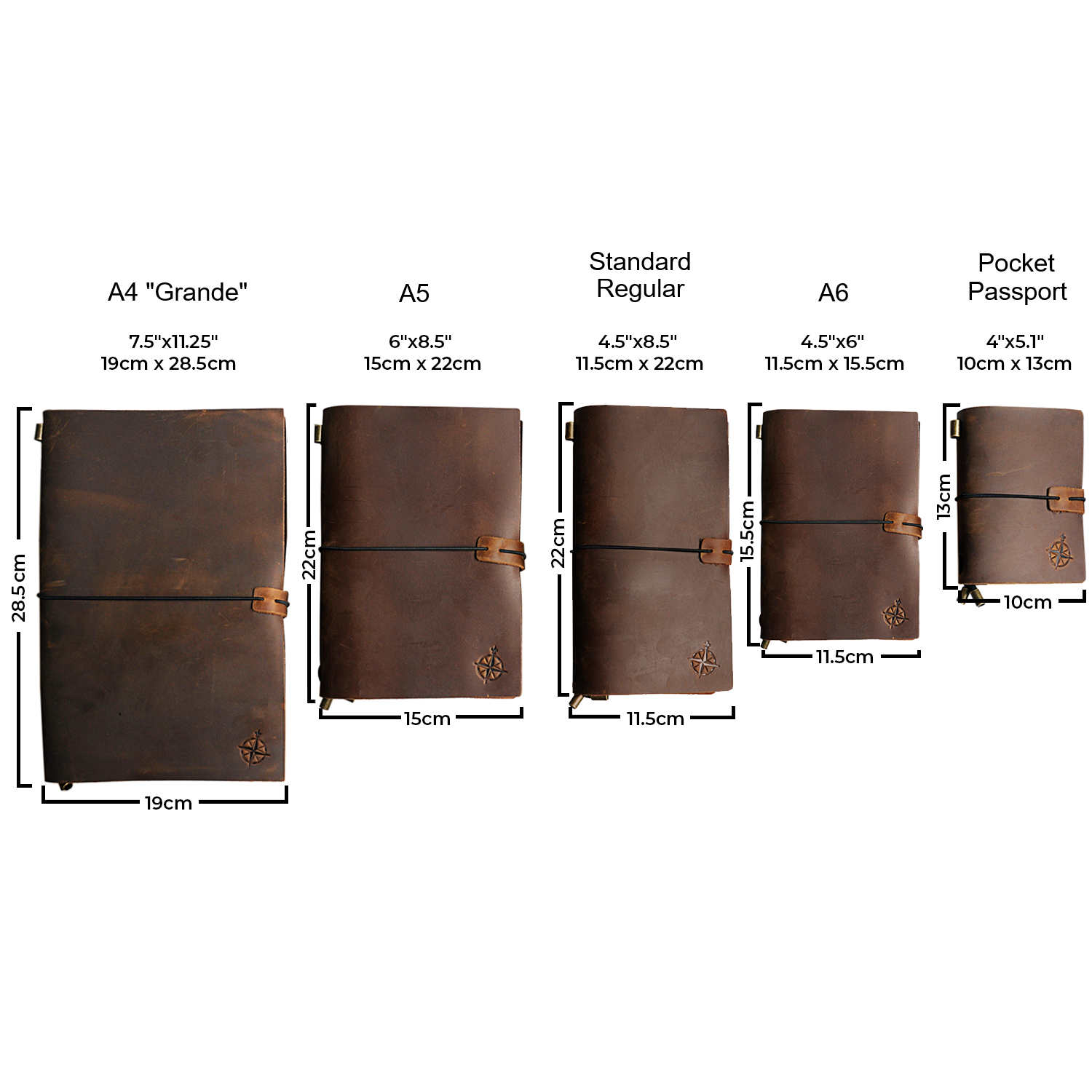 [Optional Sizes Available]: Available size refillable travelers notebook / leather journal to meet your needs: Large (B079K8GS6W), A5 (B07JNPNKKJ), Regular (B07YFBQ4GX), A6 (B083JYG6VR), and Pocket (B01N24BYQ7).