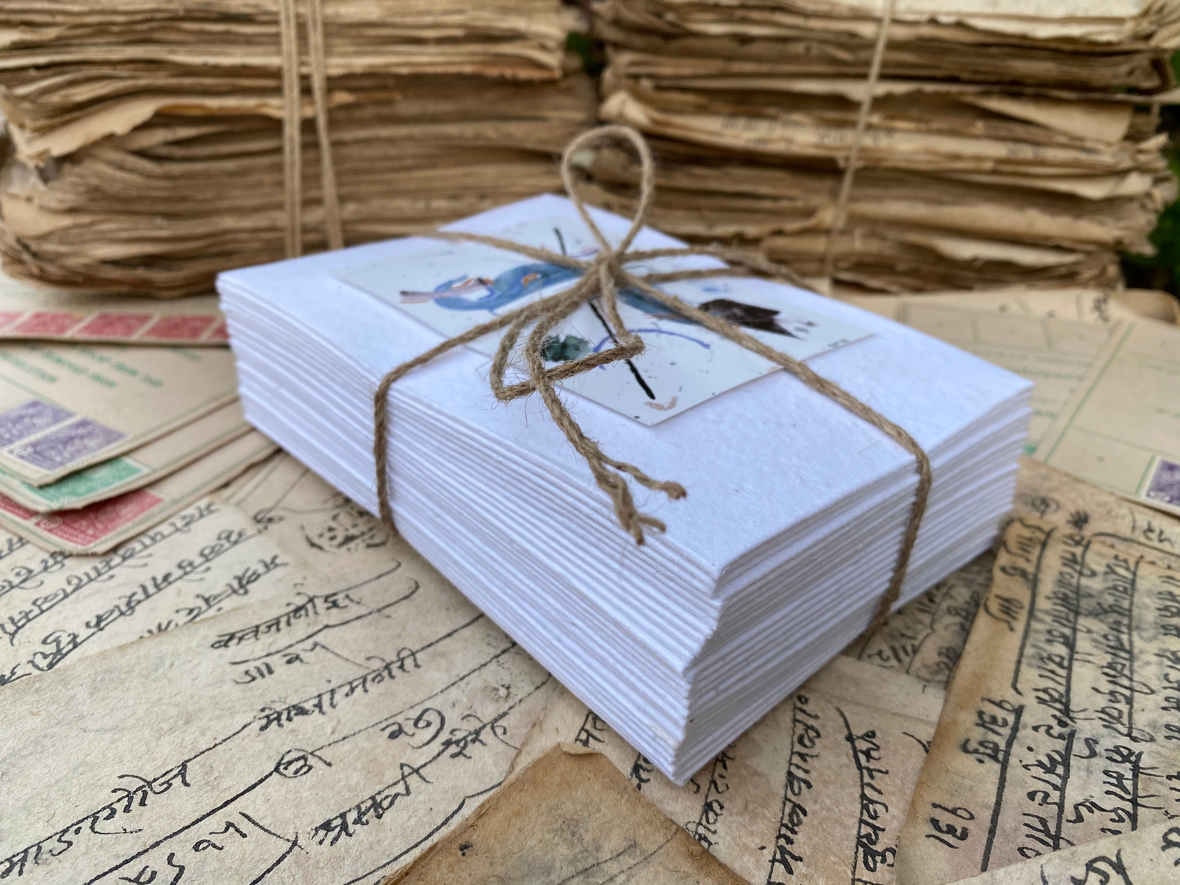 ✔️ HANDMADE 100% RECYCLED cotton paper created by artisans using eco-friendly papermaking techniques passed through generations dating back to 14th Century India. Hung to dry in the open air, it is a timeless and creative alternative to plain paper.