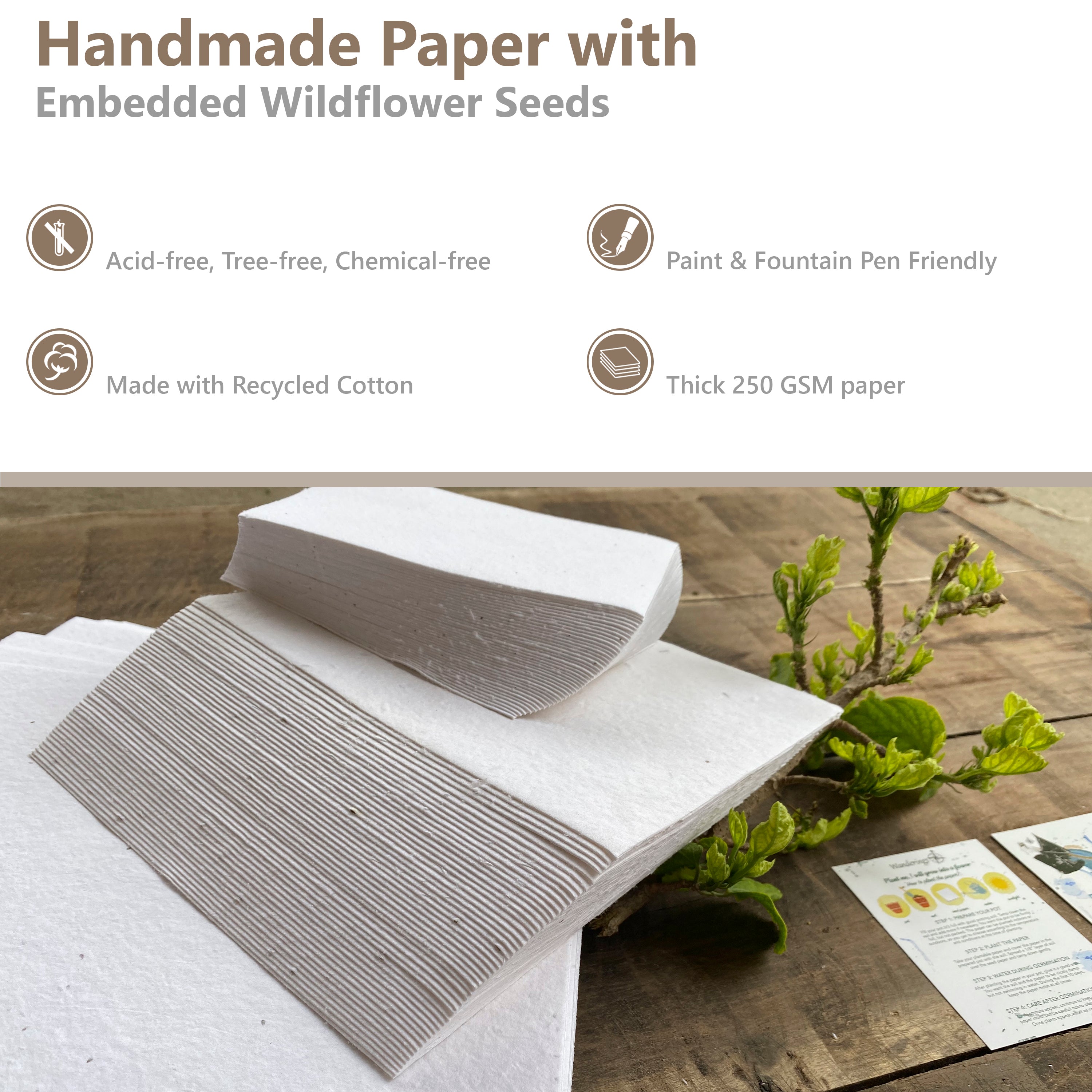 ✔️ This gorgeous, handmade seed paper is embedded with a mix of wildflower seeds. This thick paper eliminates bleed-through and feels amazing. Blank recycled cotton paper cards that are acid-free and chemical-free. Environmentally sensitive and supports most media like watercolors, ink, paint, and pencil.