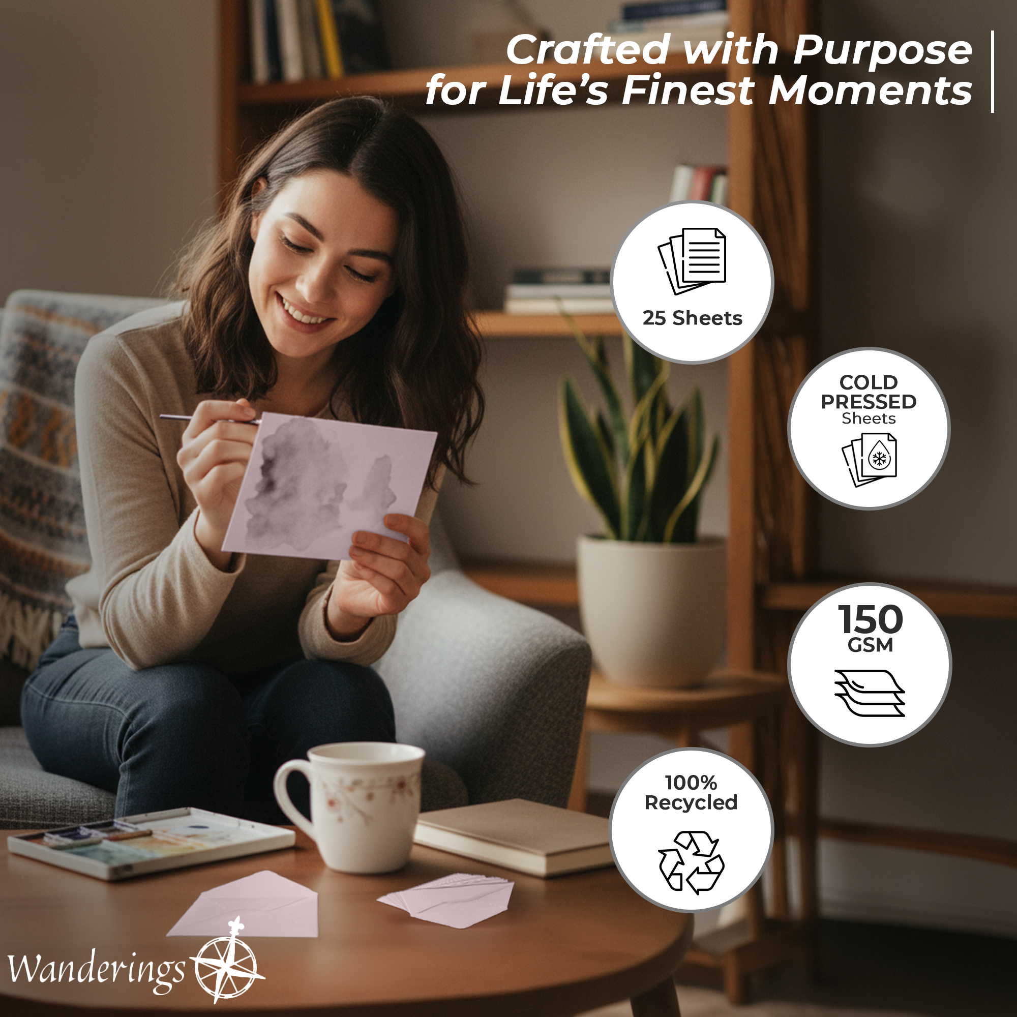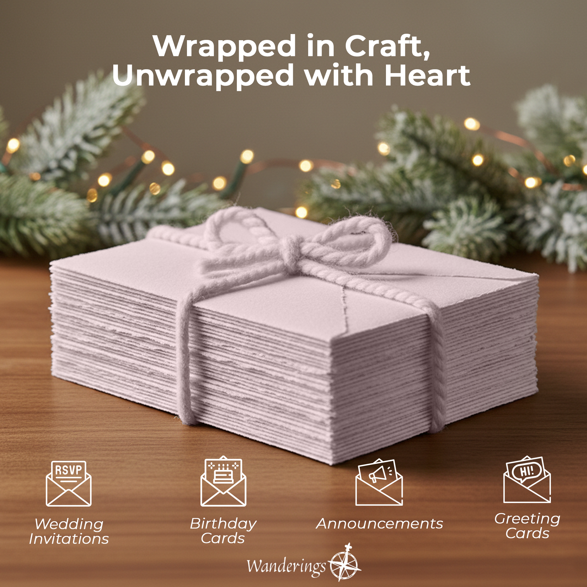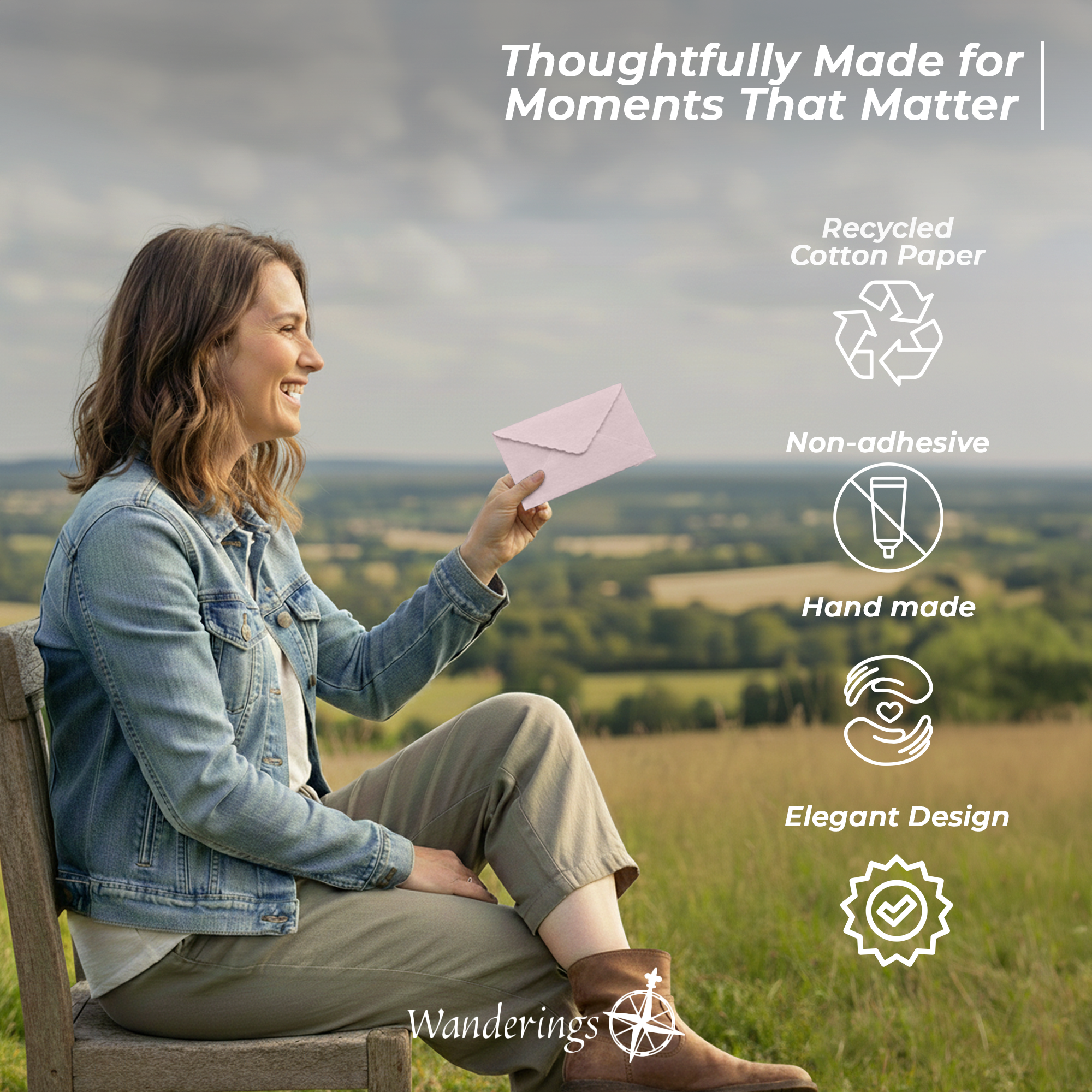 Nota: El papel y los sobres de Wanderings son hechos a mano, por lo que se pueden esperar ligeras variaciones en el tamaño.