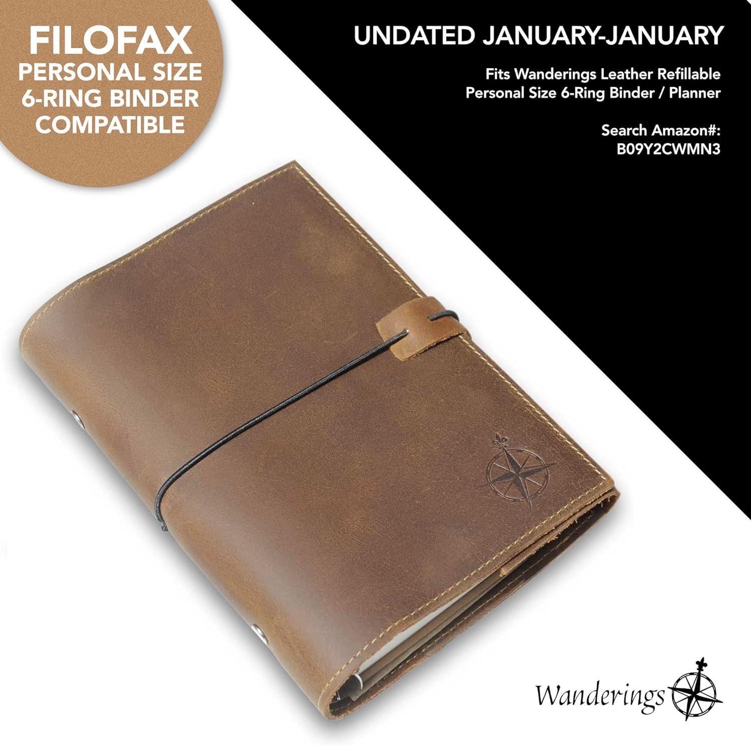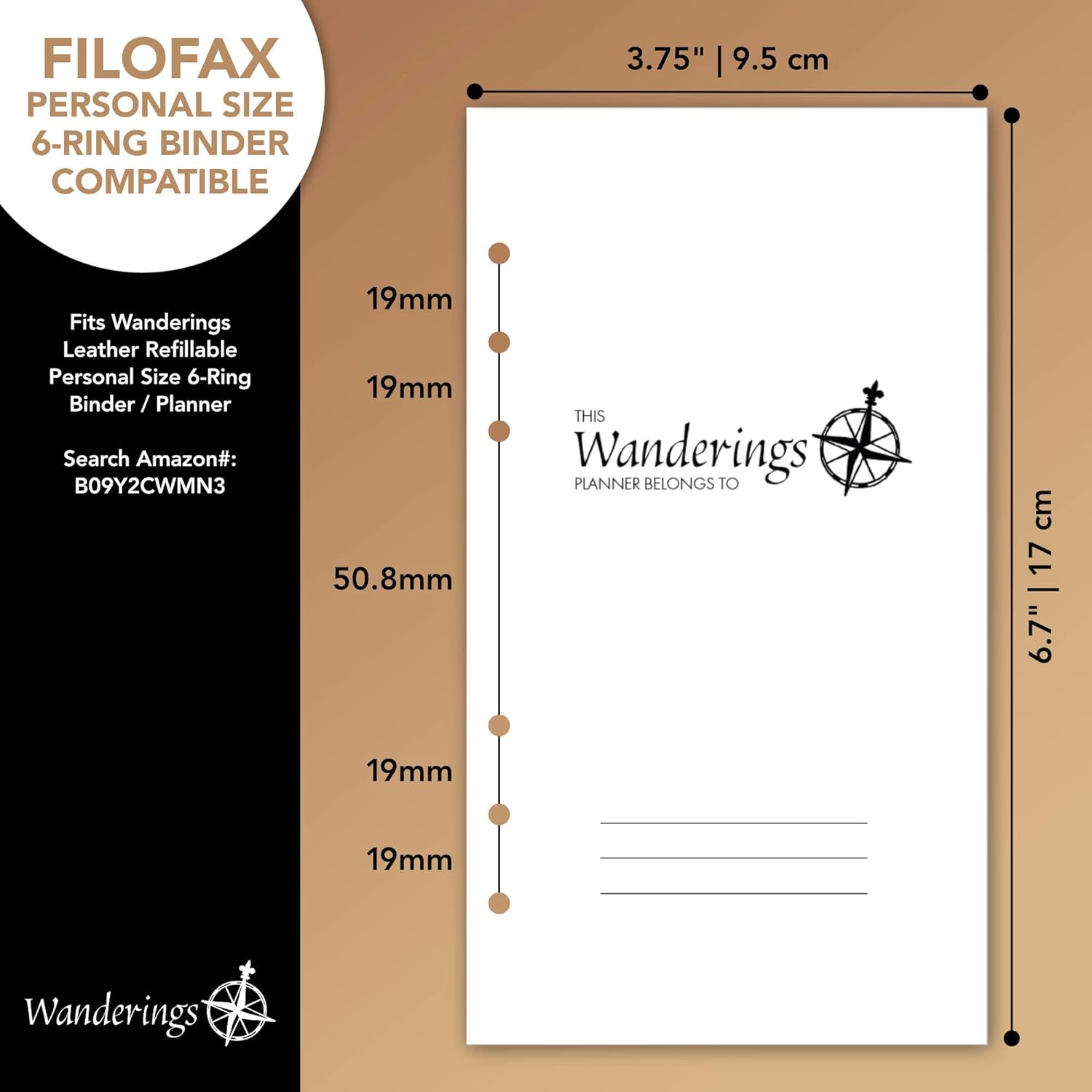 ✔️ FITS Wanderings and other A5 5.5"x8.5” (21 x 14cm) refillable binder planners. Compatible with popular 6 ring A5 binder planners such as Filofax (A5) and Kikki-K (Large), Carpe Diem (A5), Foxyfix (A5), Gillio (A5) Dokibook (A5, Large), Van der Spek (Manager).
