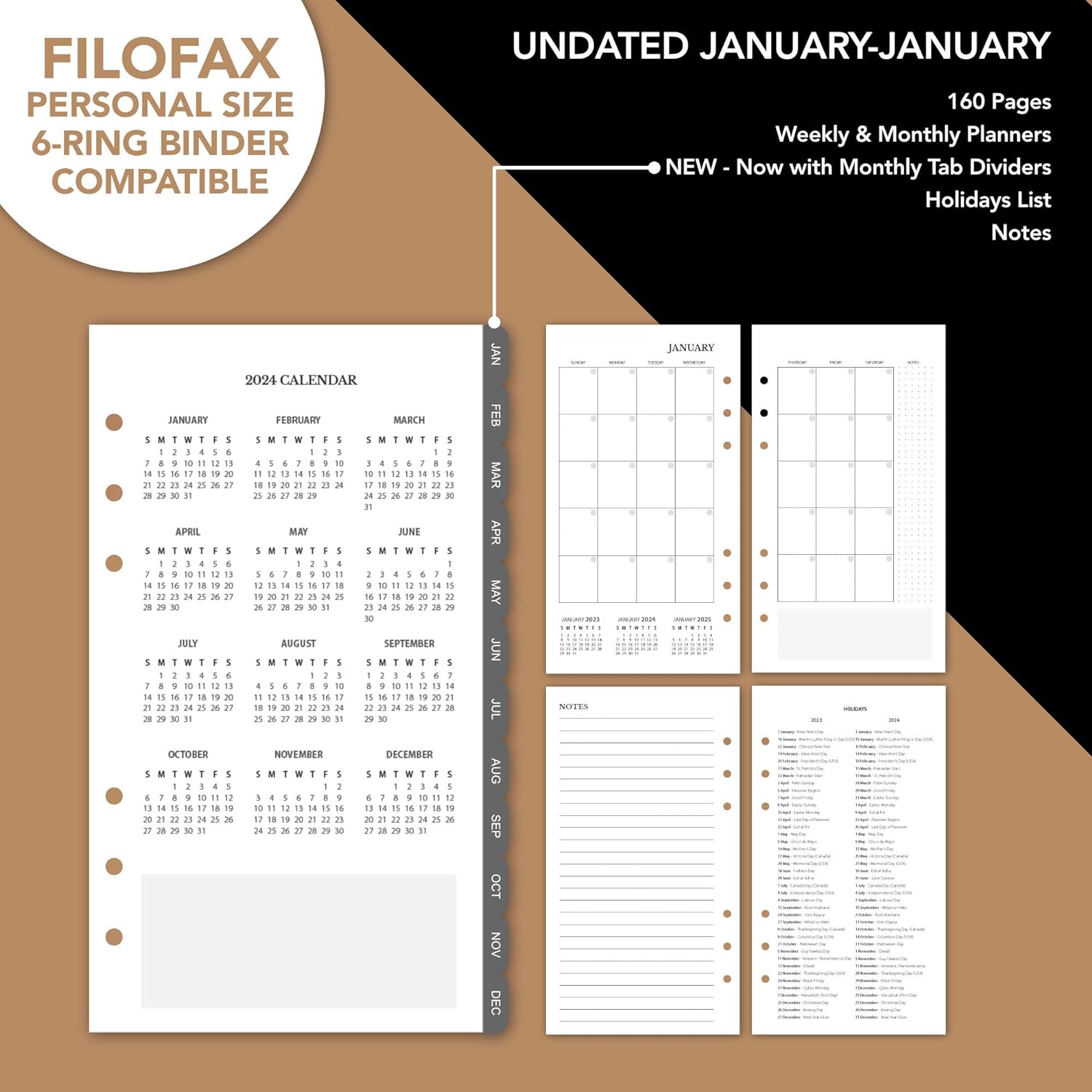 A5 Undated Weekly Calendar Refills for 6-Ring Binder - 6 Hole, 52 Weeks with Notes Section