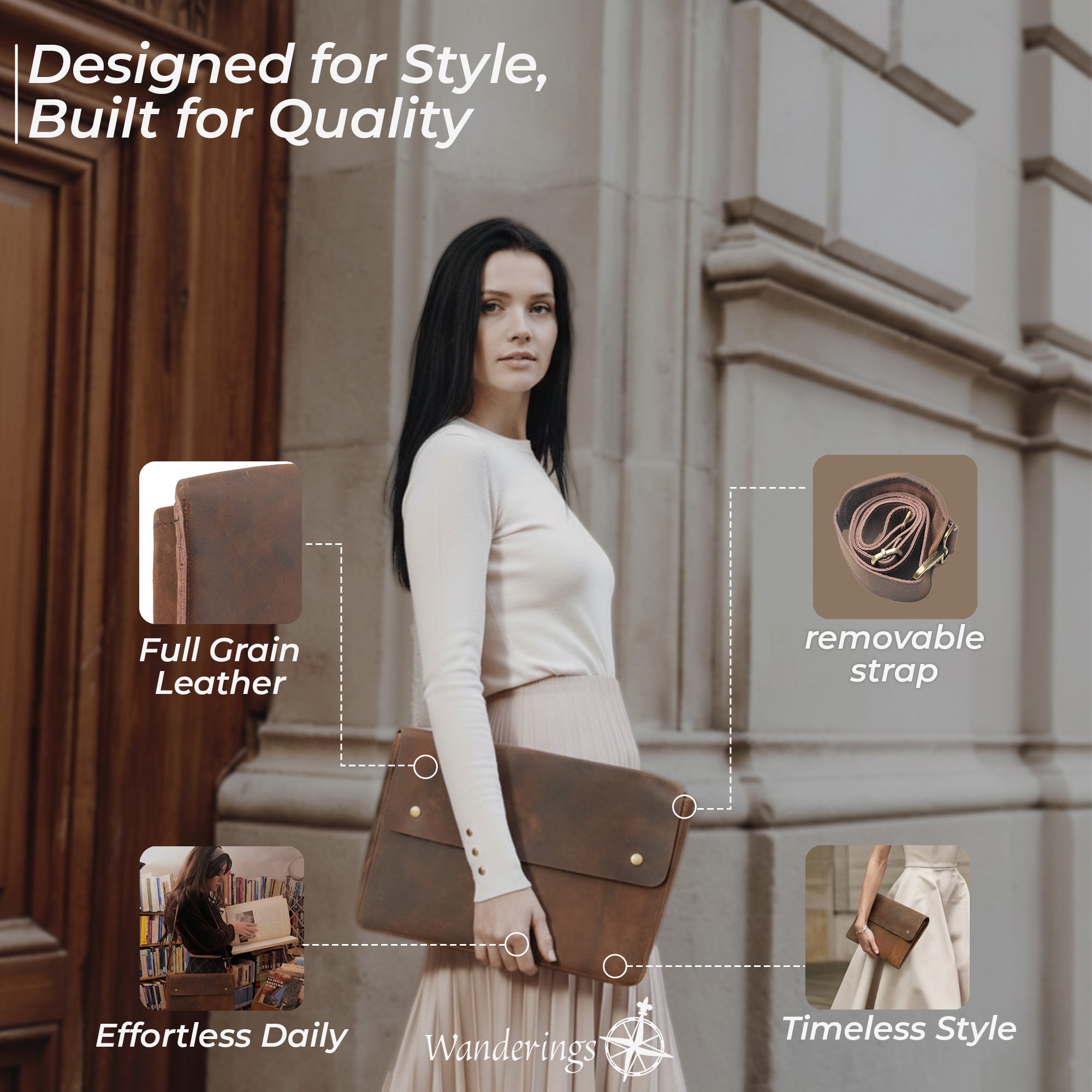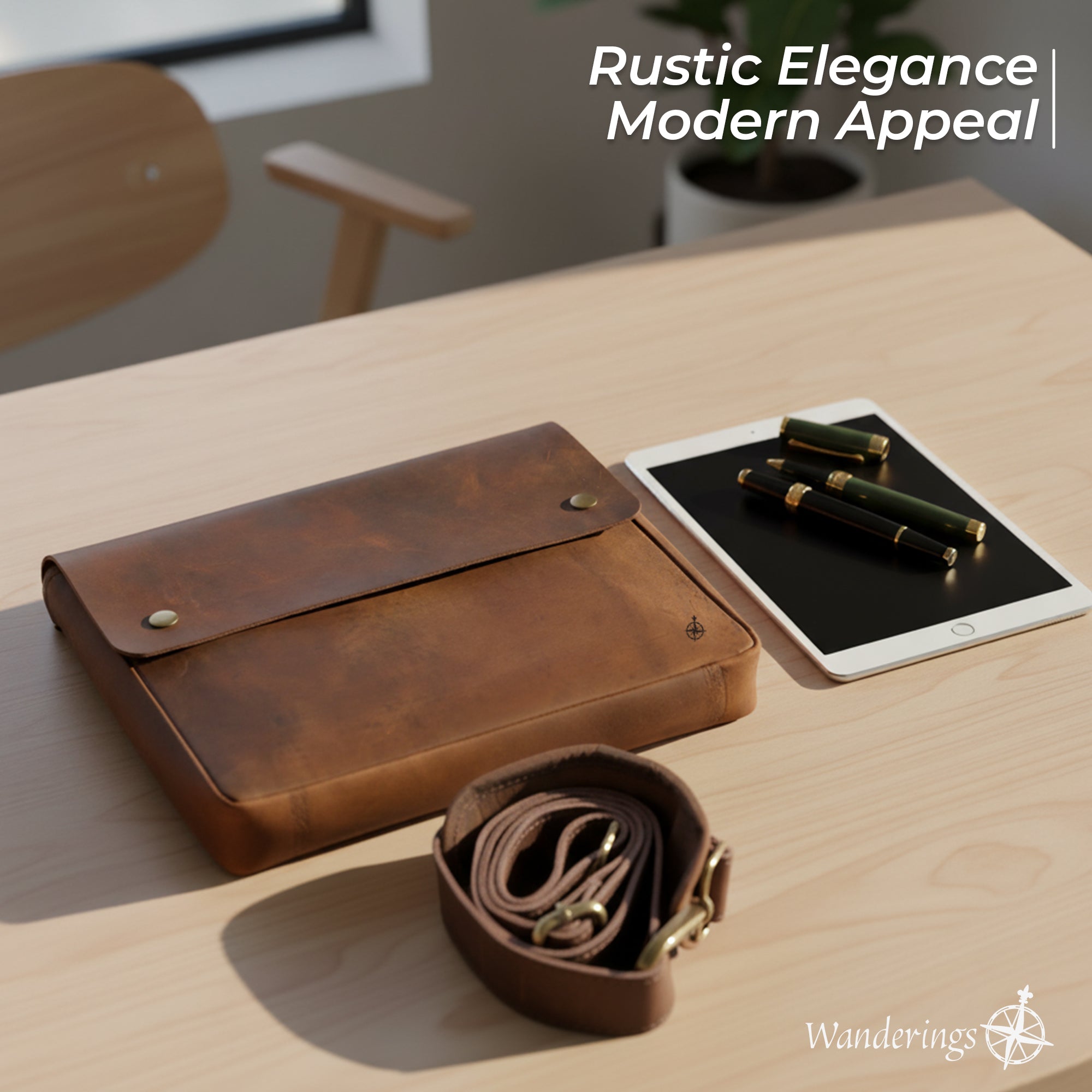 - Convenient Portfolio Case with Strap: Designed for versatility and crafted to endure years of use while maintaining its classic appeal, this leather portfolio case includes a detachable strap for travel or daily use. Carry crossbody for comfort or by hand for a sleek look. Functions as a leather folder for documents, file folder organizer, leather table sleeve, laptop sleeve portfolio for men, or stylish document holder, offering practical protection in a refined vintage style