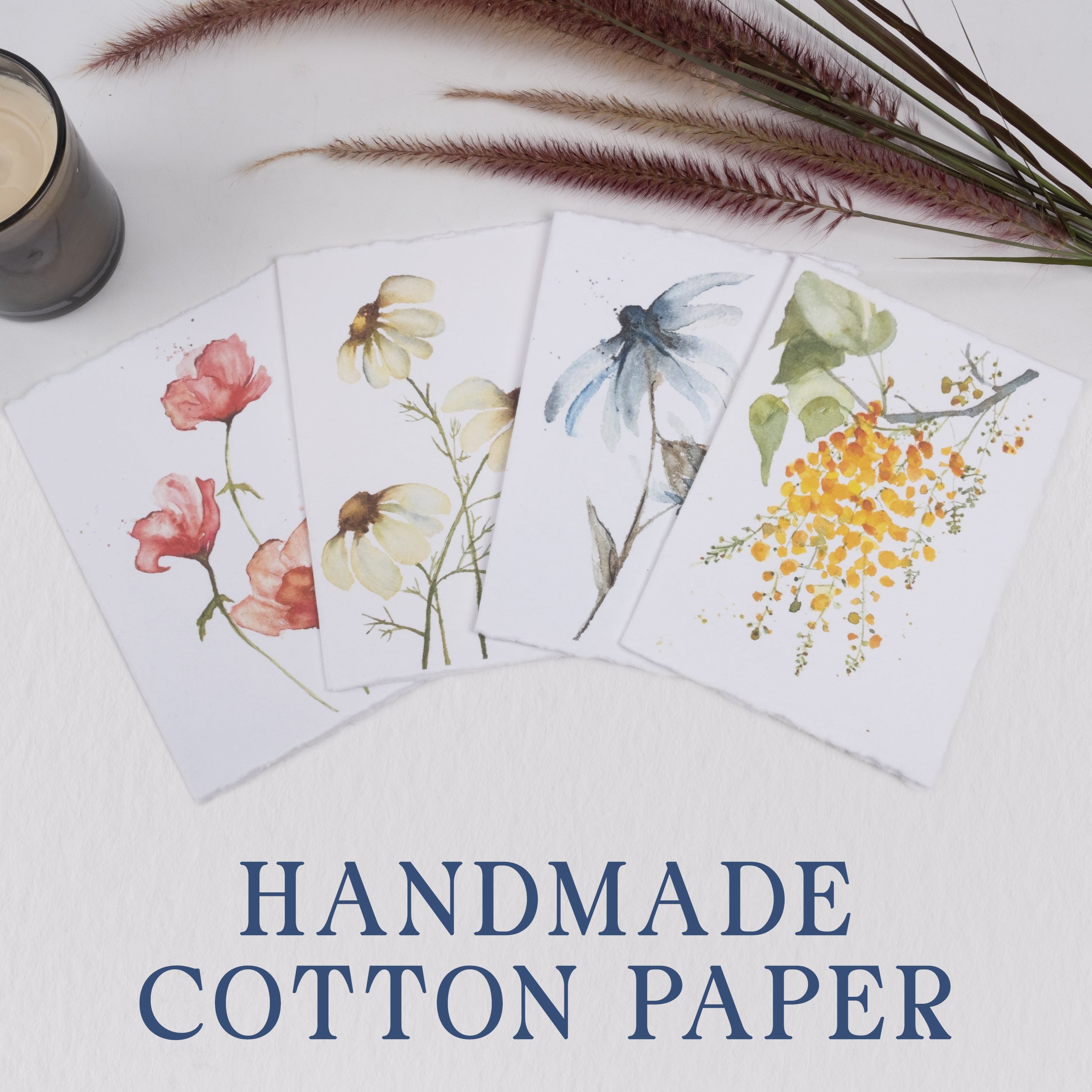 ✔️ [Artisan Crafted Variety Pack]: Set of 20 blank 5"x7" (13x18 cm) greeting cards on 300 gsm cotton deckled edge paper with 150 gsm envelopes. Handcrafted in India using traditional methods. Cold-pressed, white textured cards—perfect for crafts, light watercolor, acrylic, ink, charcoal, or colored pencils. Elegant and versatile. For heavy water use, try our watercolor paper: B0CYY858SL.