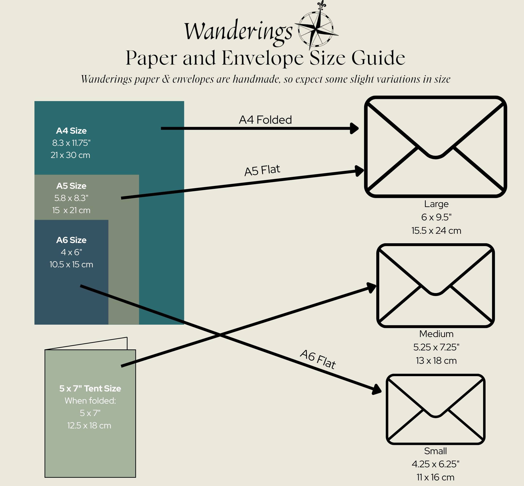 - A5: 5.8" x 8.3" / 15cm x 21cm — fits our Large 6" x 9.5" envelopes (50 pack)
