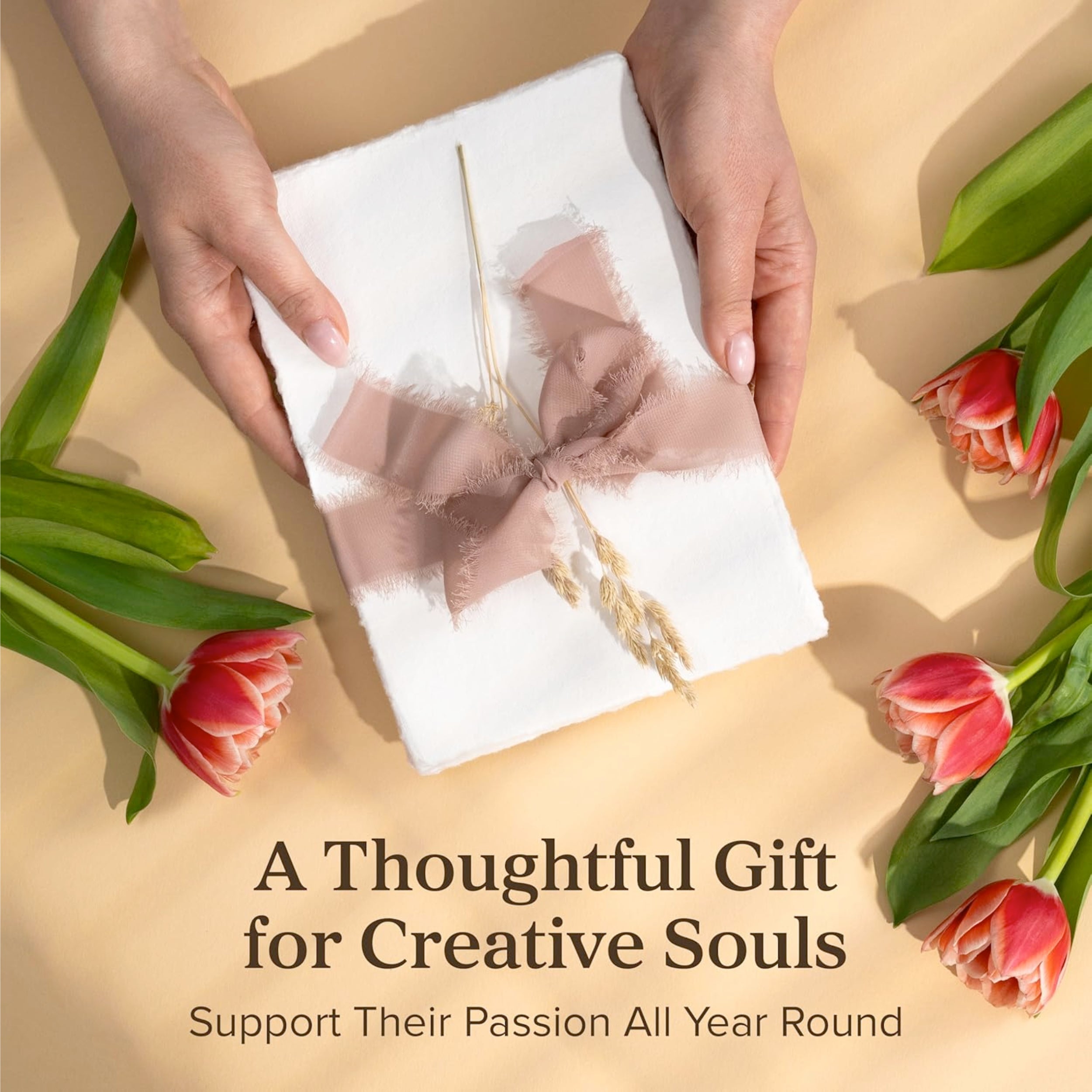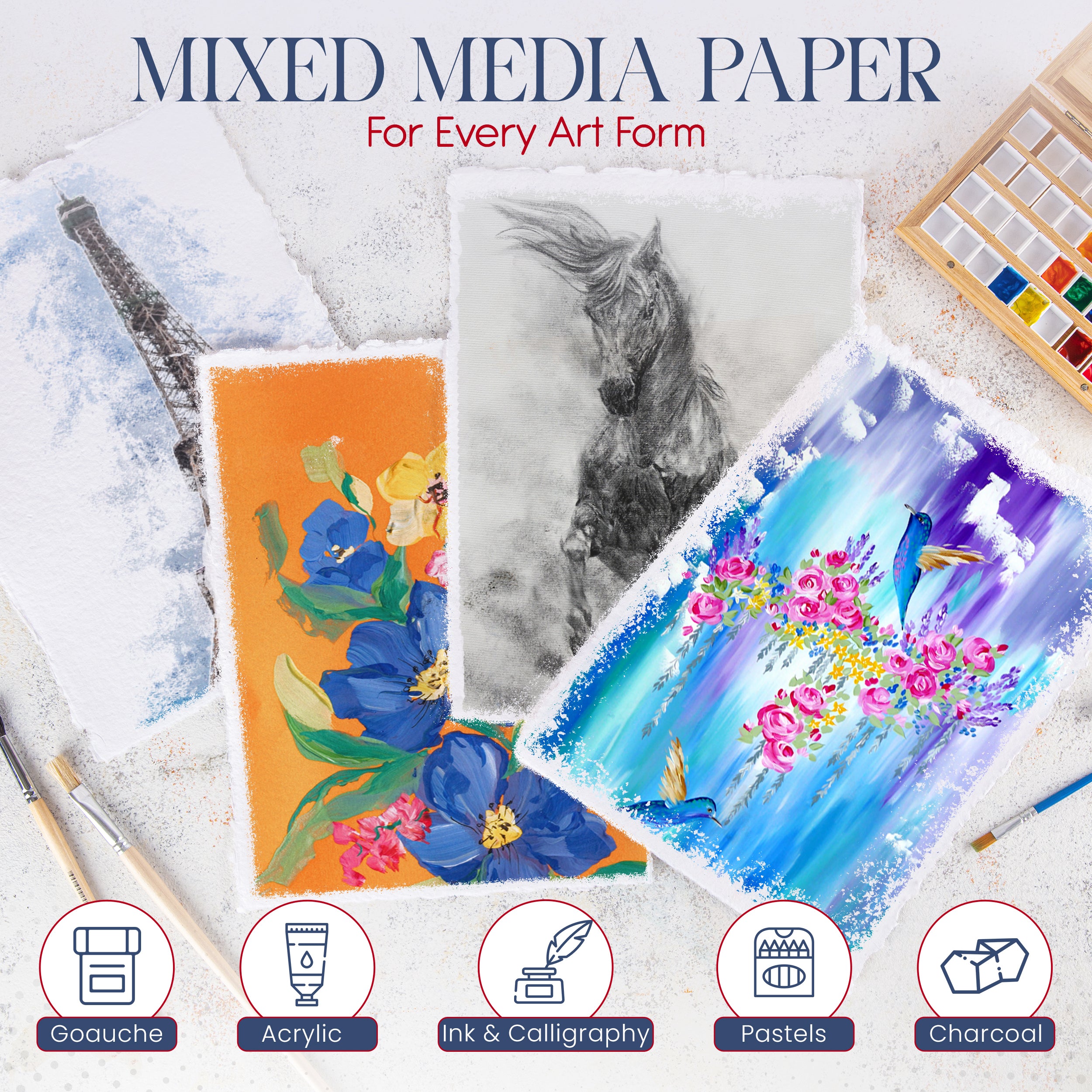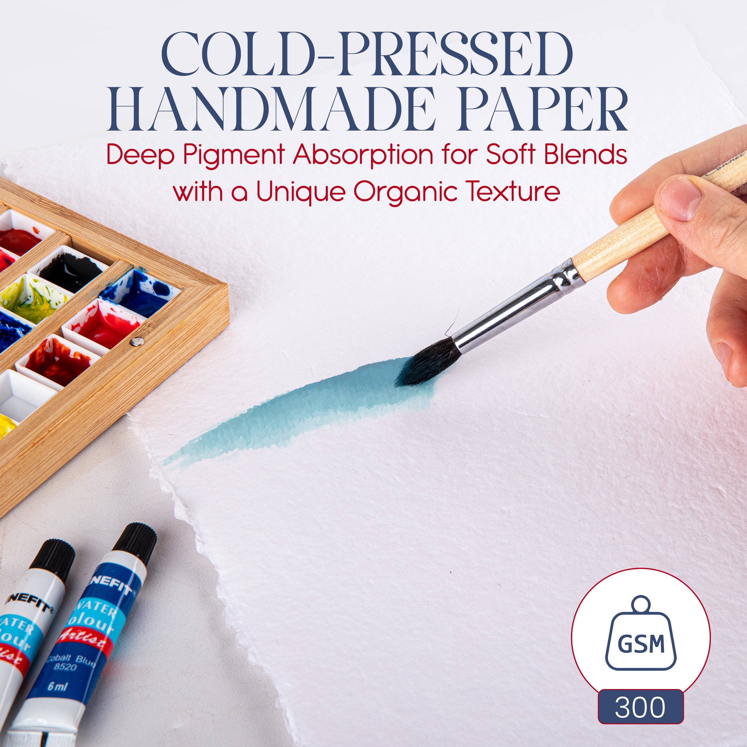 ✔️ PAINT, DRAW, SKETCH - This gorgeous 300 GSM thick paper looks and feels amazing with a slightly rough texture and deckle edges. Internally and externally sized to prevent bleed-through and support most media like watercolor, ink, acrylic, and pencil.
