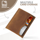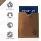 - ✔️ STYLISHLY TIMELESS: Hand-crafted and hand-stitched for a durable yet beautiful, vintage finish. The sleeve can hold a 10-year passport plus slots for your credit and debit cards, hotel room key, cash, and receipts. Dimensions: 4.25" x 5" / 11cm x 13cm.