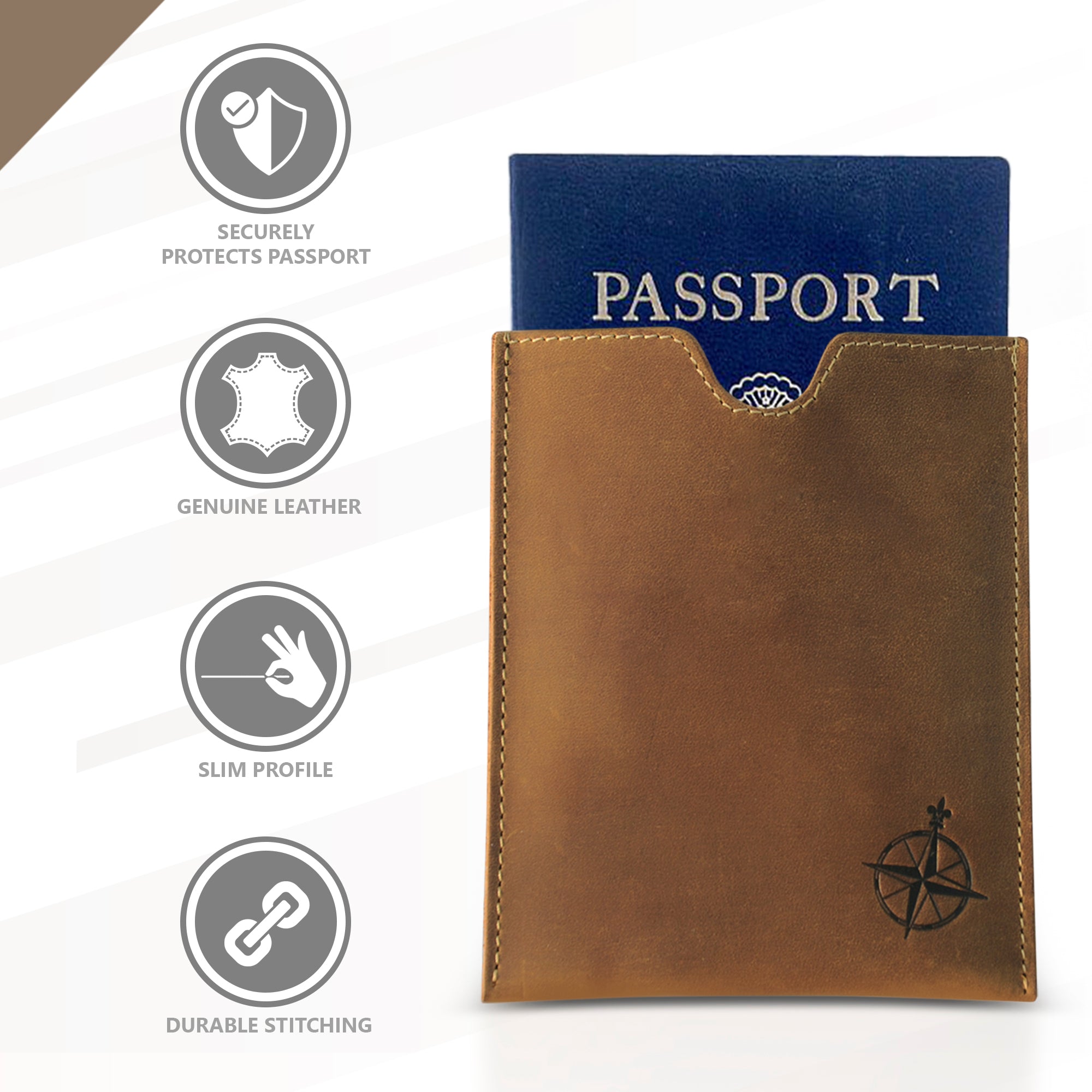 - ✔️ BEAUTIFULLY HANDCRAFTED High-quality full-grain 100% leather passport sleeve that looks, smells, and feels beautiful. Handcrafted, naturally tanned leather will age with character - or simply rub away your markings if you choose. A lifelong companion on your journeys.