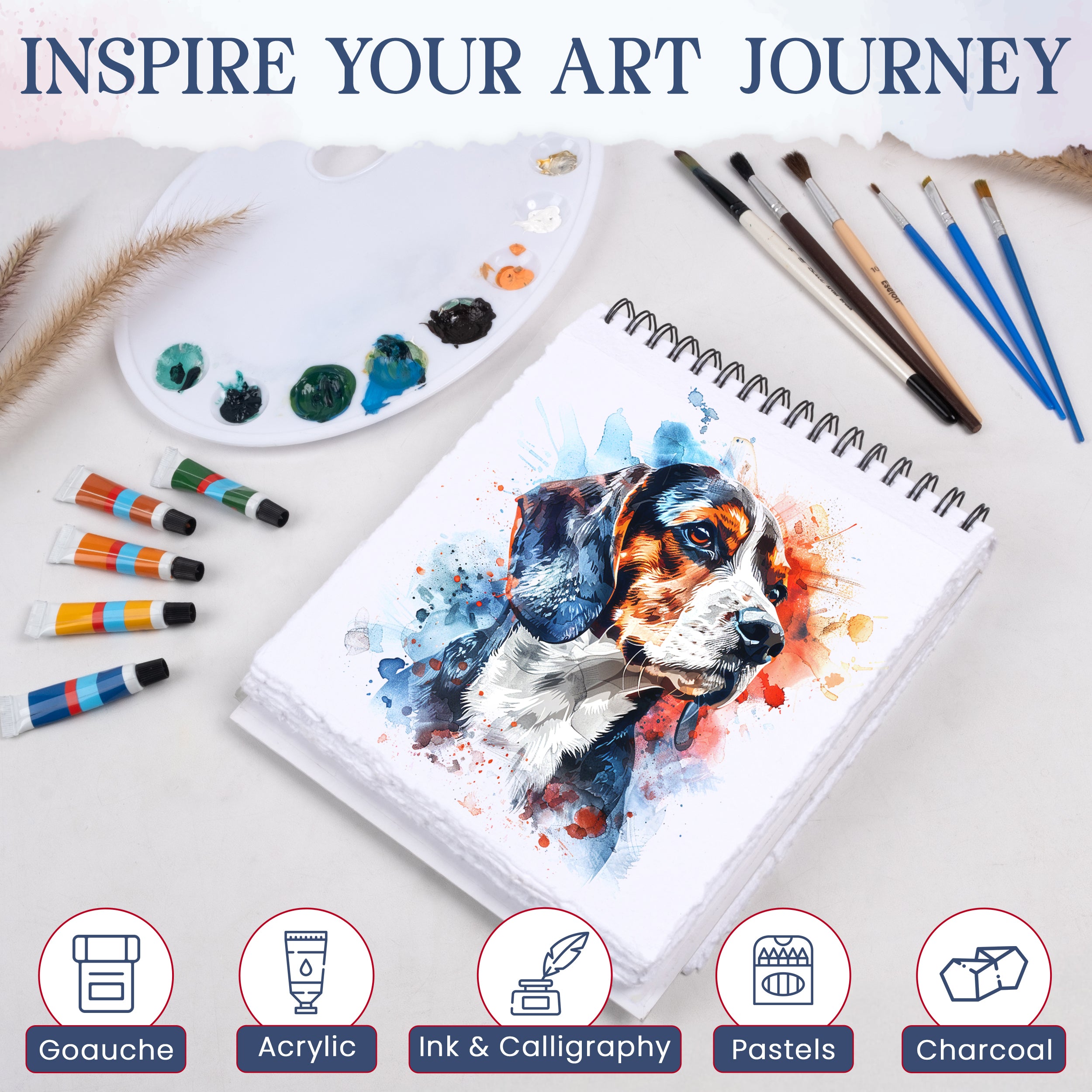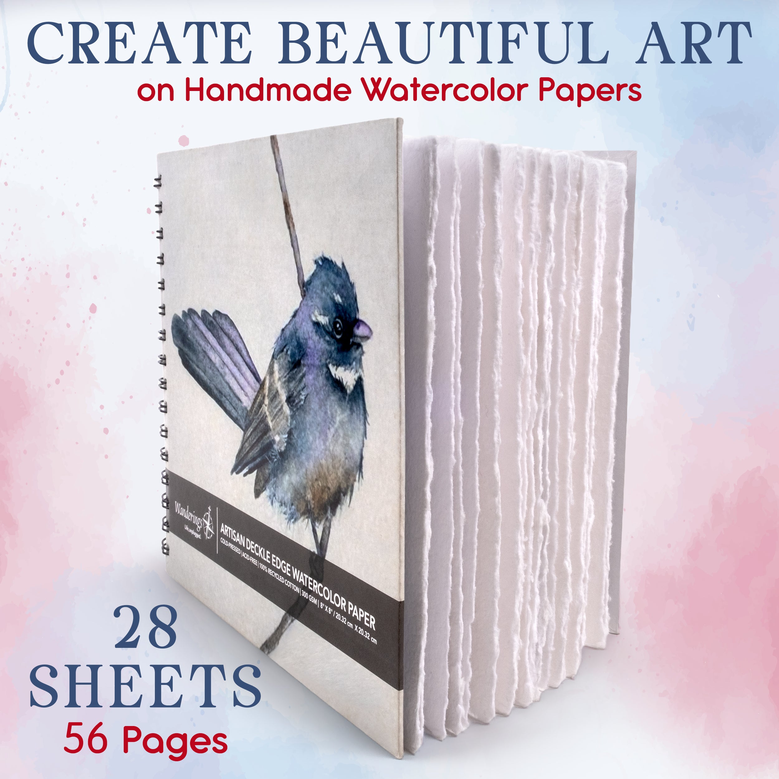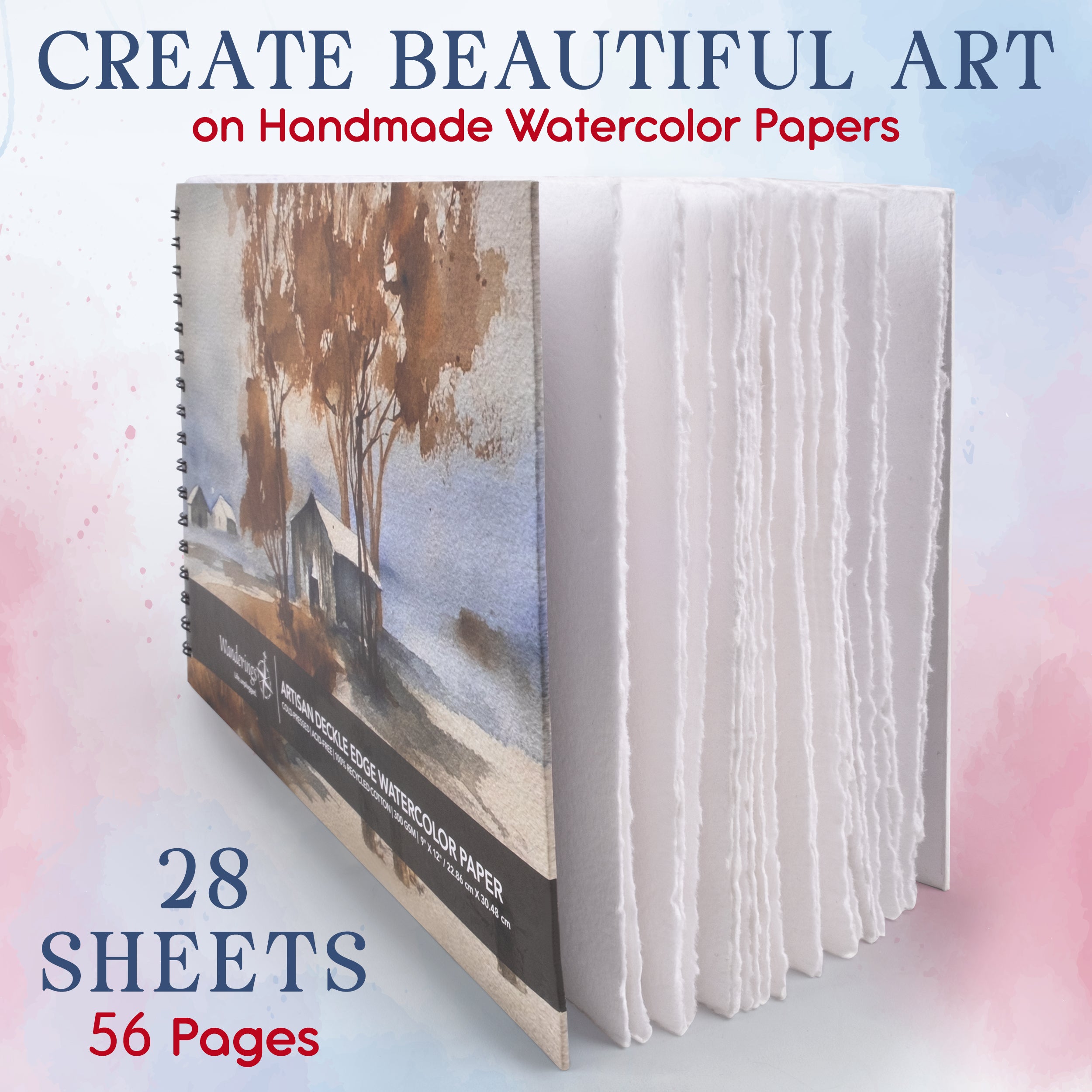 ✔️ Great for Watercolors and Gouache – Deckled edge paper Ideal as a watercolor album, scrapbook, drawing pad, or sketchbook. This tear-out watercolor journal is perfect for painting, mixed media, ink, gouache, or charcoal. Great for artists, students, or crafters looking for a premium handmade deckle edge paper journal.
