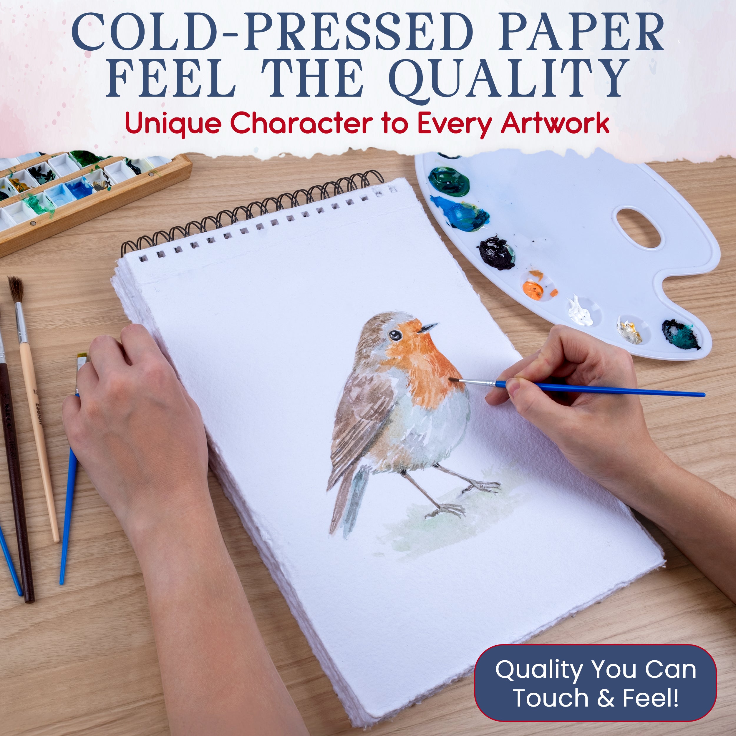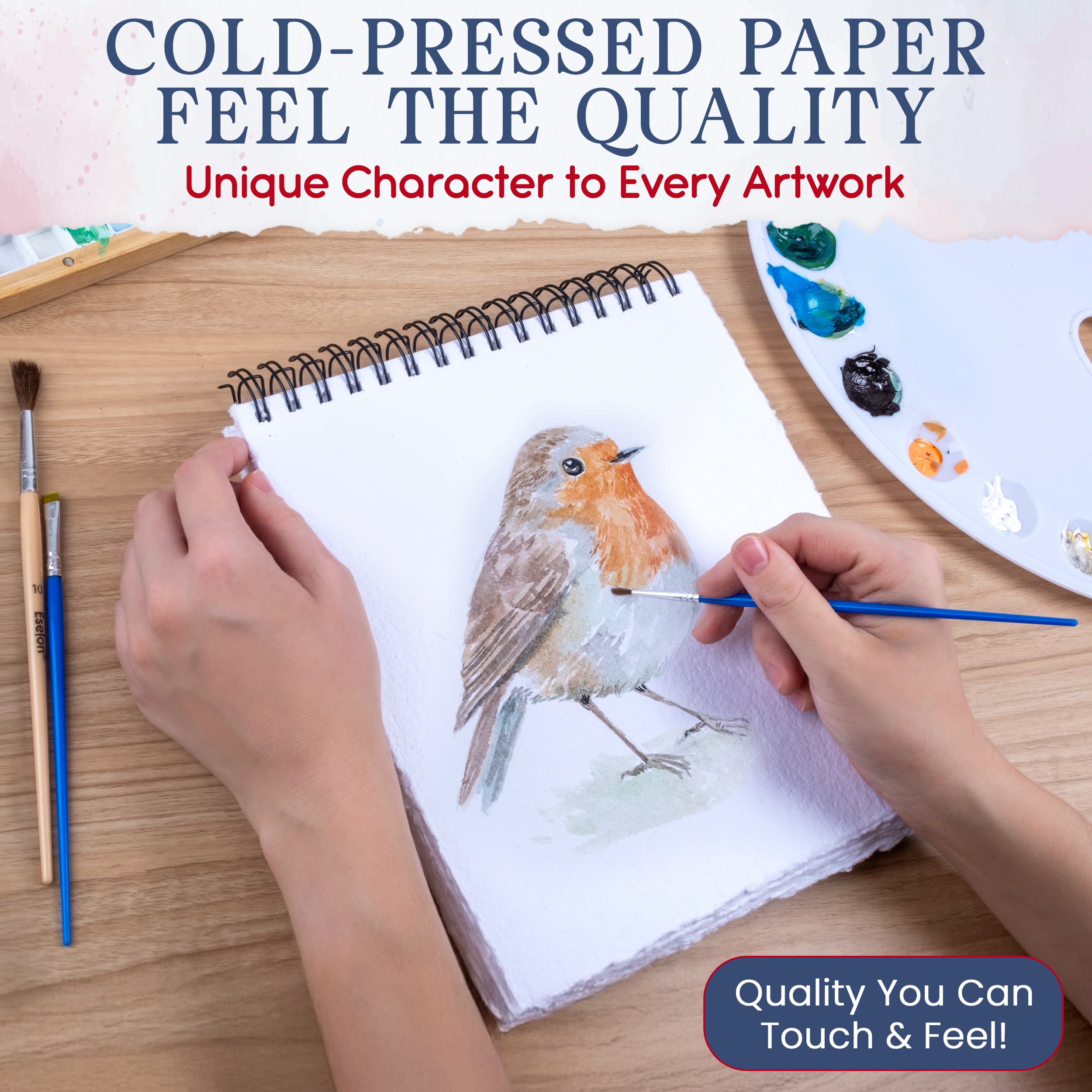 ✔️ A Dream Surface with Exceptional Paper Quality – This luxurious cold press paper is thick and gently textured, internally and externally sized to keep watercolor and gouache on the surface for vibrant, controlled application.