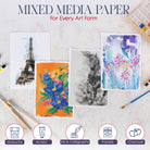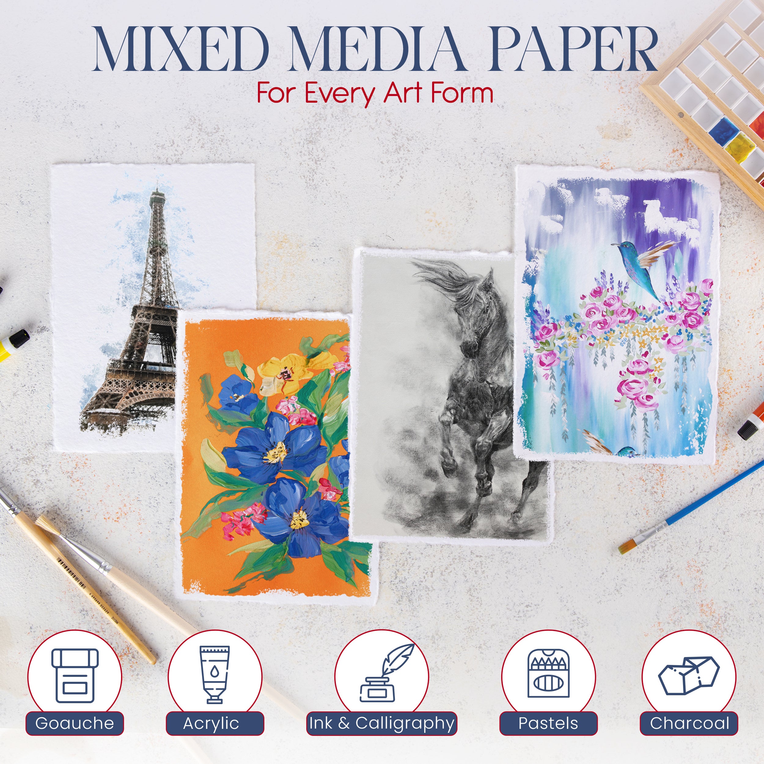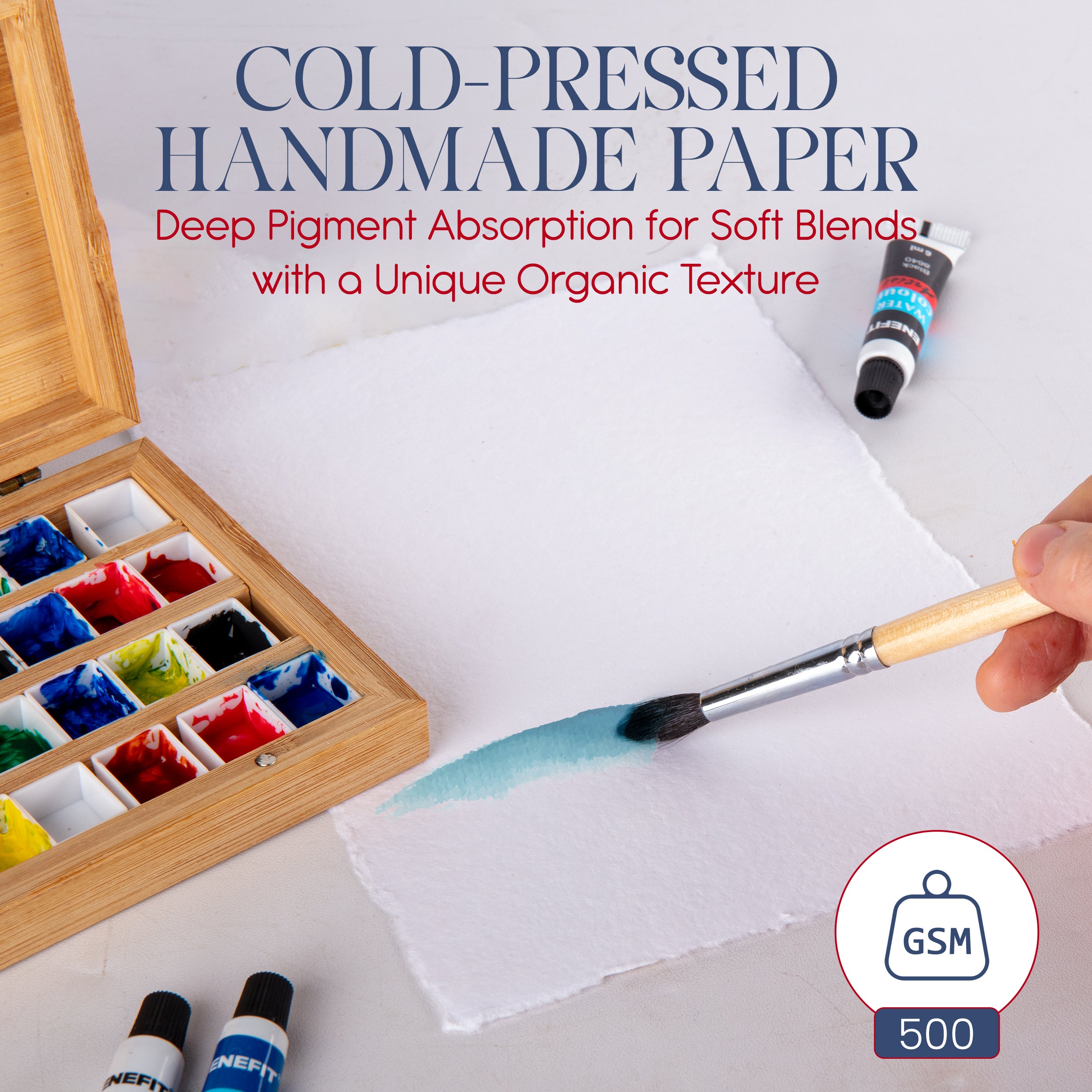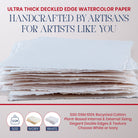 ✔️ PAINT, DRAW, SKETCH - This gorgeous 500 GSM thick paper looks and feels amazing with a slightly rough texture and deckle edges. Internally and externally sized to prevent bleed-through and support most media like watercolor, ink, acrylic, and pencil.