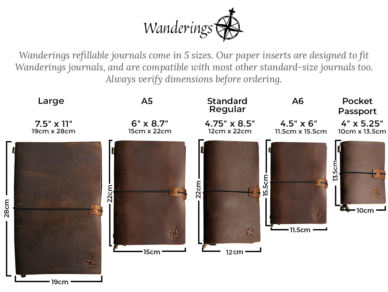 - Refillable for life — compatible with all Wanderings A5 refills in Blank, Lined, Dotted, Grid, Watercolor, and more.